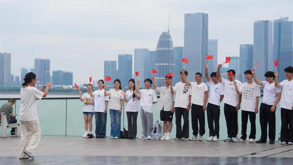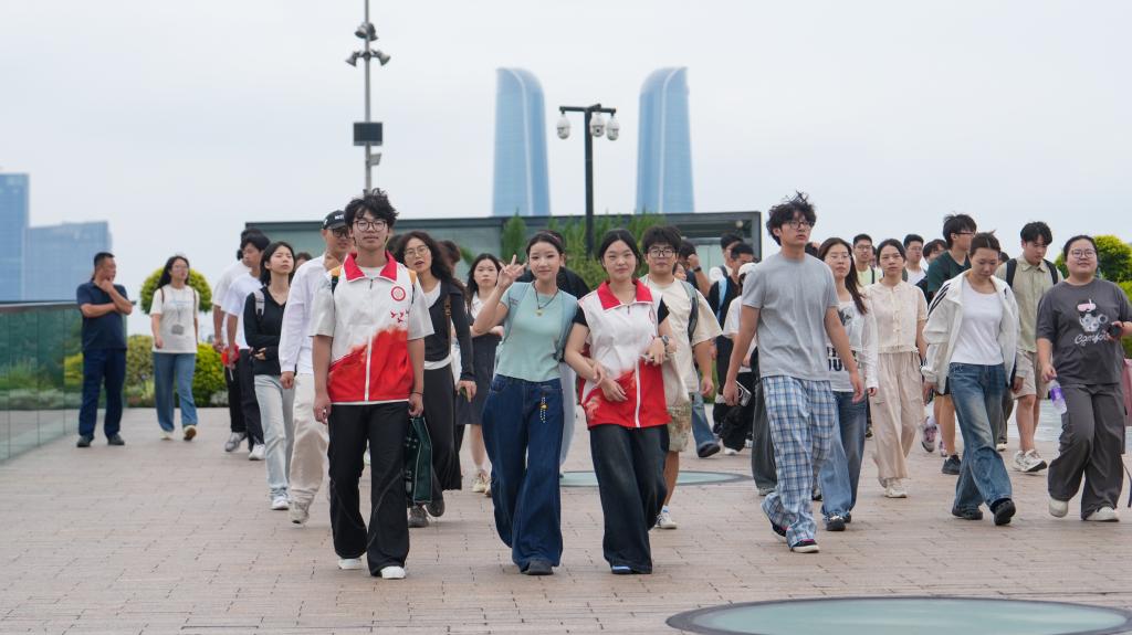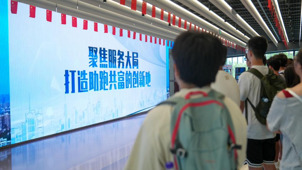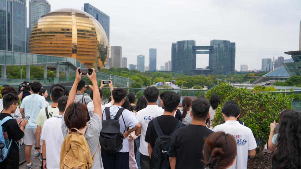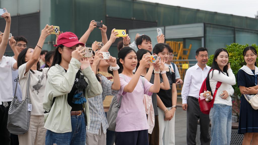西湖大学2025级伽马书院本科生金冠杰在参观过程中,不停地拿手机记录着。“我被这座城市深厚的人文底蕴、丰富的文化氛围、前沿的创新精神深深吸引。很庆幸大学的目的地选择了杭州,我希望并坚信自己将扎根杭州。”