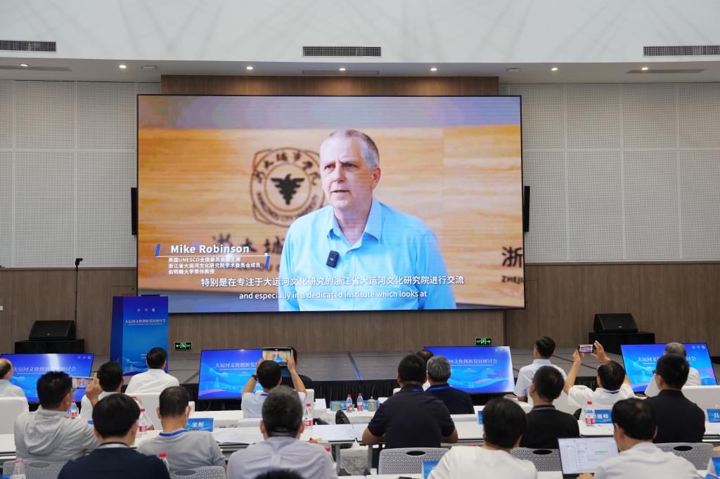 英国联合国教科文组织全国委员会副主席、世界文化遗产中心可持续旅游发展项目首席专家、浙江省大运河文化研究院专家委员会委员Mike Robinson教授作视频发言。五位新聘智库专家围绕大运河文化的国际传播、文化影响与时代价值、体制创新与文脉传承等主题分别作主旨演讲。