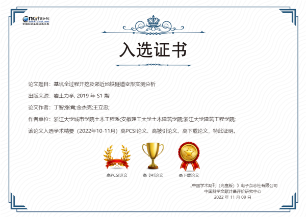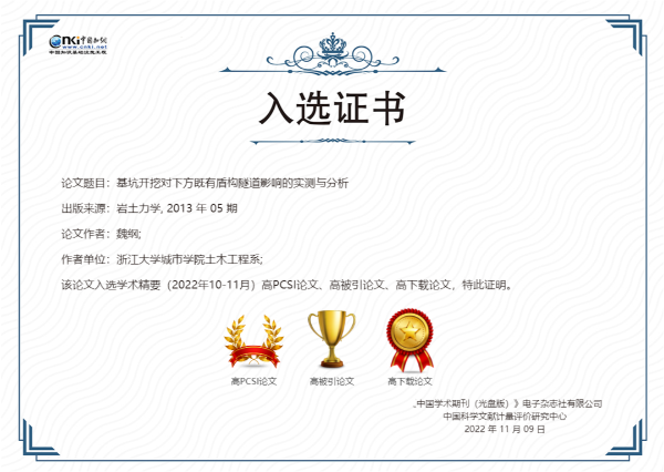 土木学科11位老师 (魏纲、丁智、魏新江、王新泉、陈春来、蒋吉清、张世民、张苑竹、陈伯明、余剑英、孙苗苗)的103篇论文入选该库,占我校入选学术精要数据库论文数(423篇)约四分之一。其中,魏纲教授、丁智教授、魏新江教授、王新泉教授、陈春来副教授作为第一作者的28篇论文入选“中国知网高影响力论文榜单”,占我校入选高影响力论文数(88篇)约三分之一。