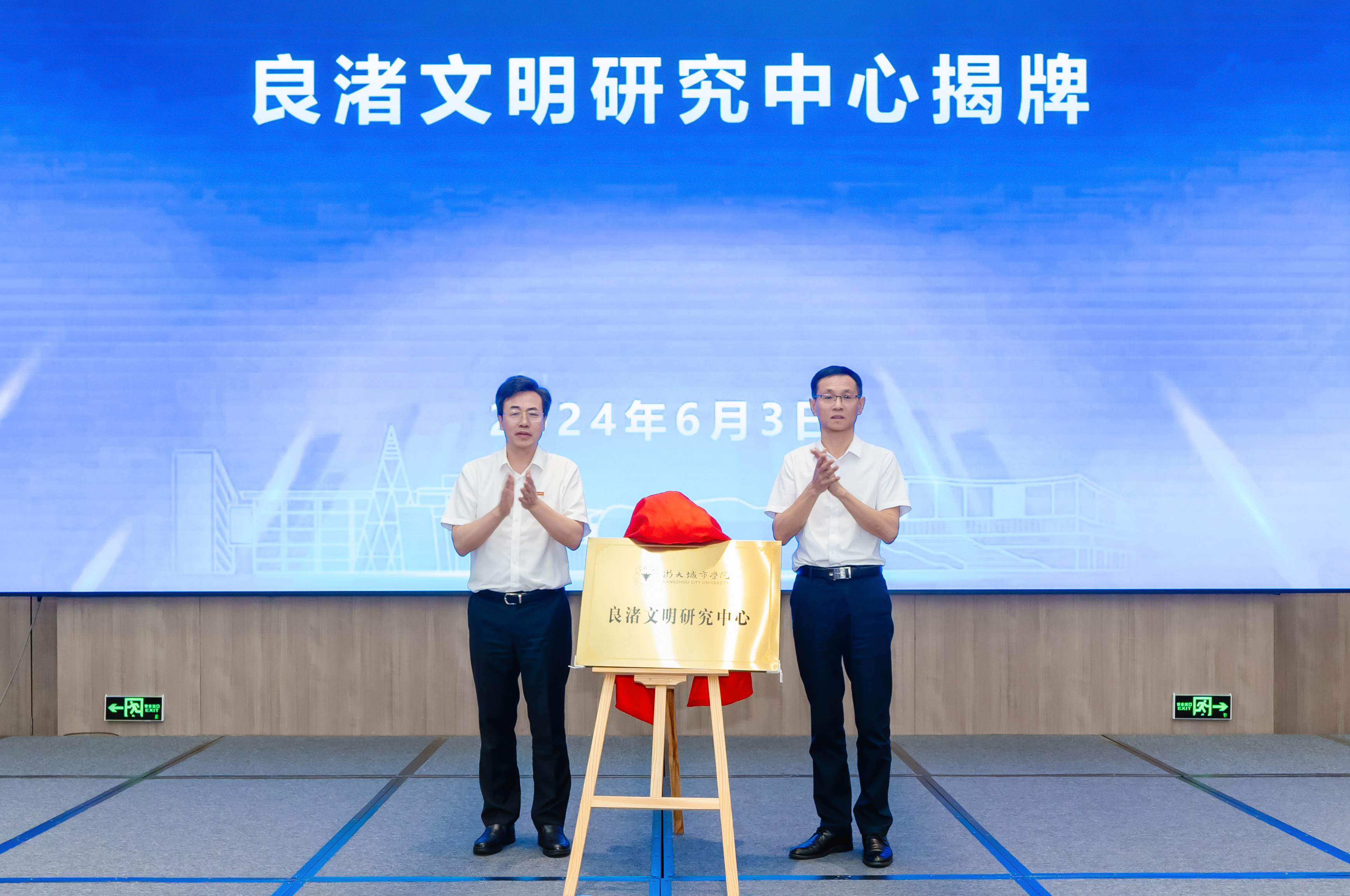 洪庆华、陈寿田共同为良渚文明研究中心揭牌