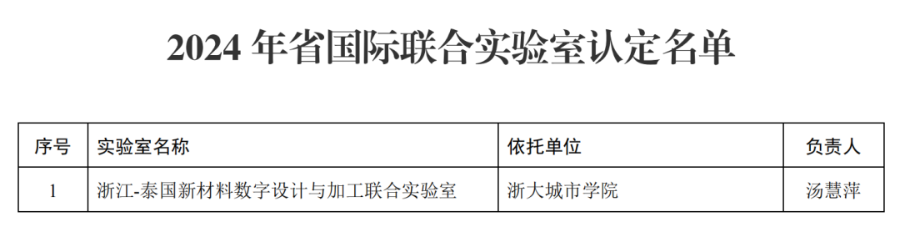我校浙江-泰国新材料数字设计与加工联合实验室成功入选2024年度省级国际科技合作载体认定名单