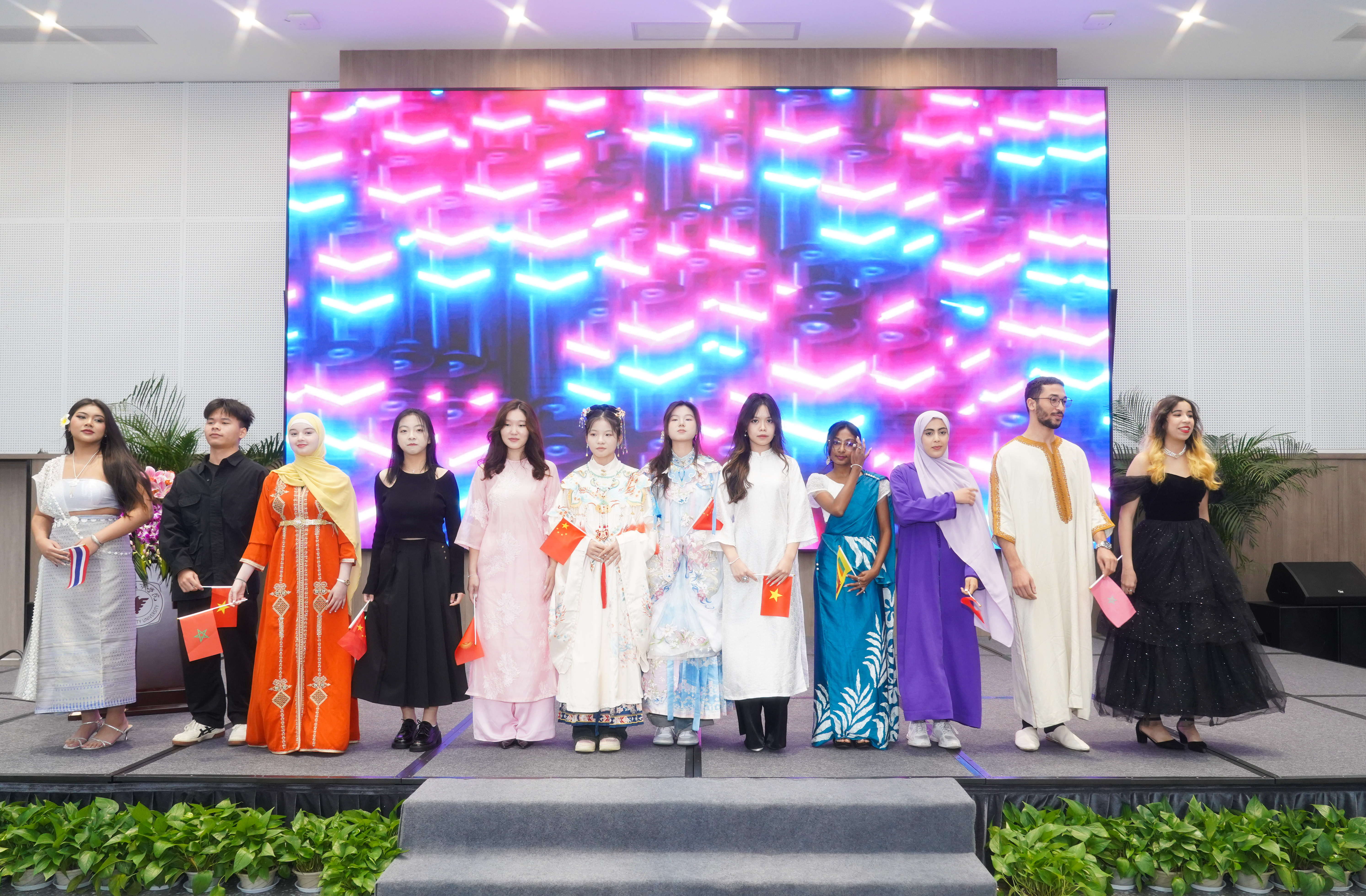 在文化秀环节,中外学生身着本国传统服饰,伴随着节奏鲜明、韵律动人的音乐,自信地走上舞台,展示各自国家的文化特色。不同文化的交融与碰撞,共同描绘出一幅和谐共生的国际友谊图景。