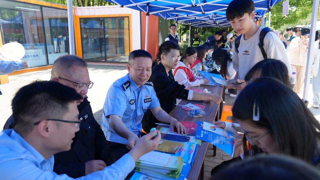 “国家安全、国土安全、生态安全、政治安全、网络安全、交通安全、心理安全、防诈骗安全……”在校警驿站广场上,设置了一系列精彩纷呈的安全教育活动环节,师生踊跃参与、积极互动。