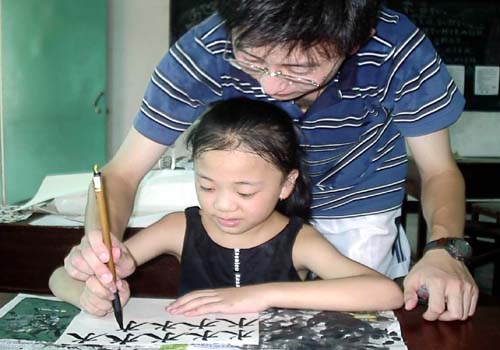 第二天开始就是正式开始上课了,上午我们主要开设了语文,数学,英语,自然科学等科目。语文以诗辞朗诵,古文欣赏为基础,补充一些课外的知识。趣味数学以一种互动的形式充分调动了小学生的学习积极性,在保证立了正常的教学情况下,增加了趣味性。英语课上,我们的支教同学用标准流利的发音带领他们诵读一些日常交际用语,由于教育得当,在我们离开的时候,孩子们已经能比较大胆的开口交流,这在以前害羞的山村孩子身上是难以看到的,这也从一个侧面反映出我们的活动是相当成功的。自然科学课上,一场太阳为中心,9大行星以远近环绕排列的真人模仿演示,调动起了孩子的童心和表演欲望,以太阳公公的称呼代替了生硬的“老师”。下午开设了兴趣班,学生自主报名,分为文艺、书法、素描和棋牌四个班,进行小班化教育。这儿特别要说明的是,在炎热的下午,没有空调也没有风扇的闷热的教室中,就是坐着也会出汗,可我们的支教同学们尽心尽职的上课教学,嗓子哑了还是带着唱,衣服湿透了还是带着跳舞,汗水一滴滴的滴到纸上还是坚持着教他们书法画画……这些要不是亲眼看见亲身经历,体会不到那种感动那份骄傲,因为我们代表的是信电分院,宣传的是浙江大学城市学院。