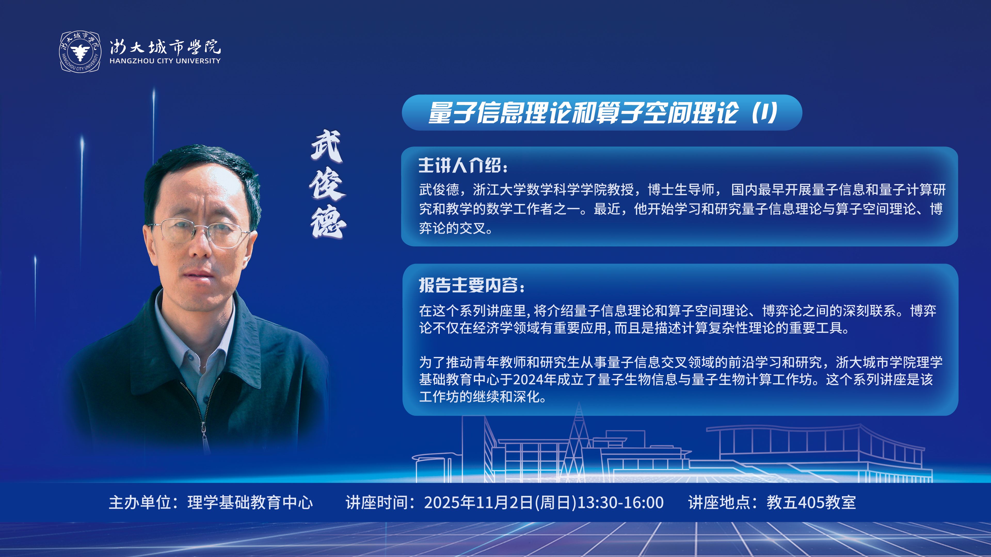 讲座量子信息理论和算子空间理论 (I)时间:2025-11-02 13:30