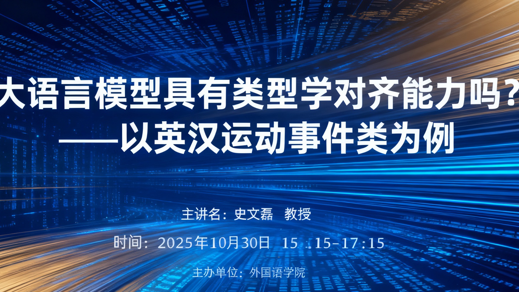 讲座大语言模型具有类型学对齐能力吗?——以英汉运动 讲座标题 事件类型为例时间:2025-10-30 15:15