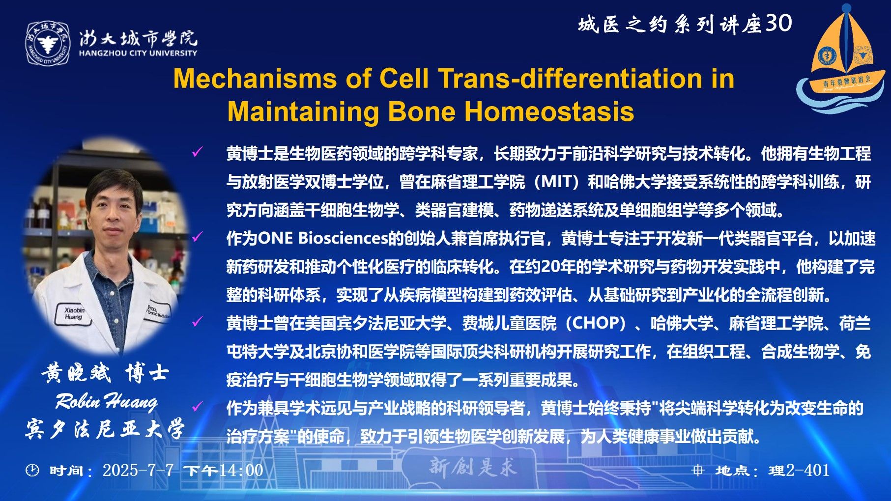 讲座Mechanisms of Cell Trans-differentiation in Maintaining Bone Homeostasis时间:2025-07-07 14:00