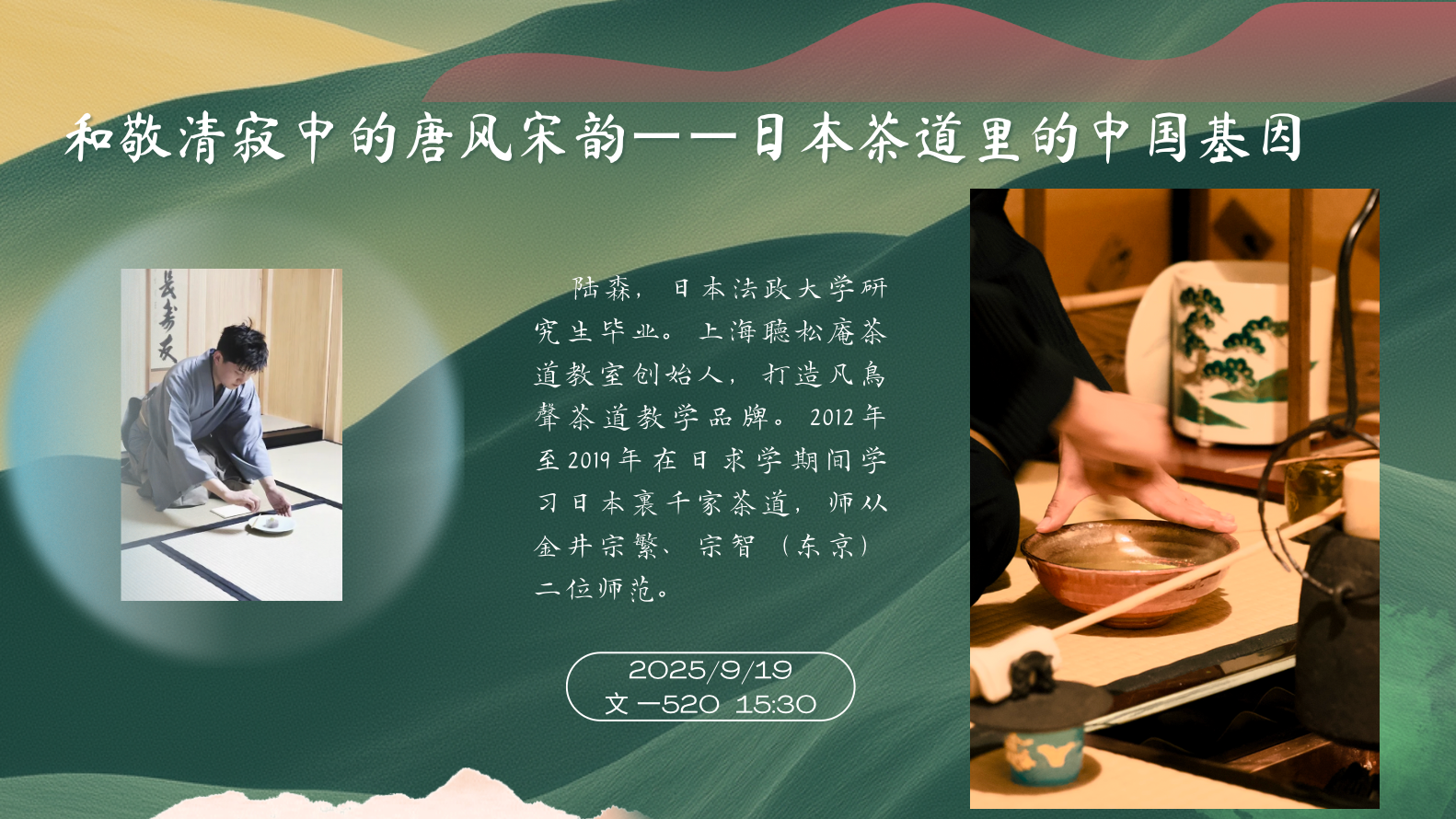 讲座《和敬清寂中的唐风宋韵:日本茶道里的中国基因》时间:2025-09-19 15:30